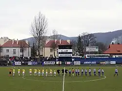 - ↑ Maciej Kuzicki otrzymał czerwoną kartkę za dwie żółte za niesportowe zachowanie i gesty skierowane w stronę kibiców gospodarzy.