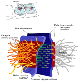 - ↑ David Garrod, Martyn Chidgey. Desmosome structure, composition and function. „Biochimica et Biophysica Acta”. 1778 (3), s. 572–587, 2008. Elsevier. DOI: 10.1016/j.bbamem.2007.07.014.