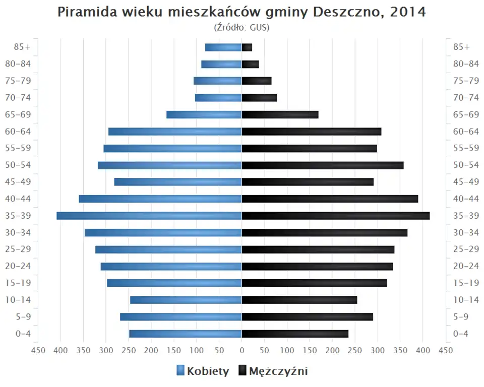 - Piramida wieku mieszkańców gminy Deszczno w 2014 roku[1].
