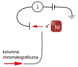 gdzie: Inas – natężenie prądu w czasie przepływu czystego gazu nośnego, I – natężenie prądu w chwili, gdy przez komorę przepływa gaz z domieszką, K – współczynnik zależny od natężenia pola elektrycznego i powinowactwa elektronowego oznaczanego związku, x – współczynnik zależny od geometrii komory jonizacyjnej, c – stężenie związku.