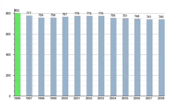 Według danych z dnia 31 grudnia 2012, wieś zamieszkiwało 708 osób, w tym 356 kobiet i 352 mężczyzn[6].