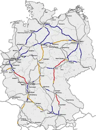 Po zakończeniu II wojny światowej w poszczególnych strefach okupacyjnych funkcjonowały oddzielne zarządy kolei. W 1949 r. w nowo utworzonej RFN powstała Deutsche Bundesbahn (DB) (Niemiecka Kolej Federalna), w NRD zachowano przedwojenną nazwę – Deutsche Reichsbahn (DR) (Niemiecka Kolej Rzeszy).