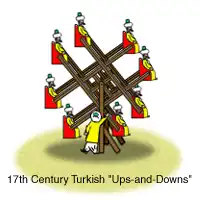Ideowym przodkiem diabelskiego młyna jest ręcznie obracana, zbita krzyżowo z drewnianych pali konstrukcja z XVII wieku, do tej pory spotykana w niektórych częściach świata.