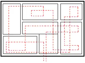 Prostokąt pogrubiony symbolizuje teren zakładu, mniejsze prostokąty – poszczególne wydziały, natomiast czerwona linia symbolizuje ruch produktu od wejścia surowca do wyrobu gotowego opuszczającego zakład. Zależnie od pożądanej dokładności można przedstawić wydziały, grupy maszyn lub pojedyncze stanowiska, przez które przechodzi wyrób.