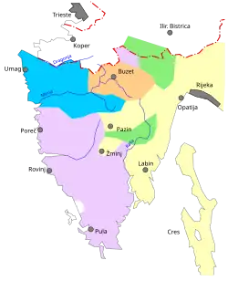 - rozwój *ě (jać) w i, tzw. ikawizm, np. besȉda, snîg < psł. *besěda, *sněgъ, choć liczne są też ekawizmy, jak np. w południowej Istrii sêno, susȅd < psł. *sěno, *sǫsědъ[1],