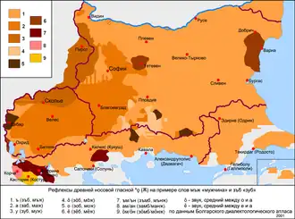 - różnorodne kontynuanty prasłowiańskiego sonantycznego *l̥, np. l̥, ol, oł, ał, ə lub też al, ăl, ål[3],