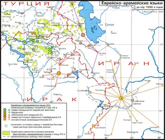 - centralna – używana w południowo-wschodniej Turcji (prowincja Mardin), obejmująca języki turoyo i wymarły mlahsô