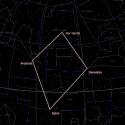 Wewnątrz Diamentu Panny prawie w całości znajduje się gwiazdozbiór Warkocz Bereniki.