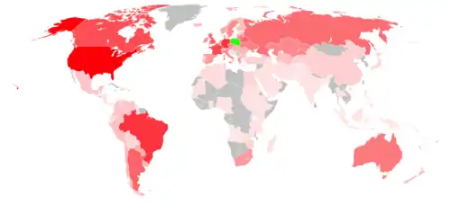 Wielka Brytania, Niemcy, Holandia, Irlandia, Austria, Francja, Norwegia, Szwecja, Włochy, Belgia, Dania, Islandia, Hiszpania, Szwajcaria