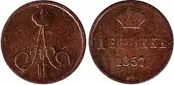 Dienieżka – miedziana moneta rosyjska równa ½ kopiejki, o masie 2,55 grama, bita w latach 1849–1867, przedstawiająca na awersie monogram carski, a na rewersie znak wartości[1].