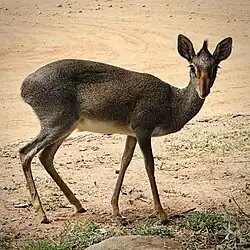 Madoqua damarensis | (Günther, 1880) | dikdik namibijski | gatunek monotypowy | południowo-zachodnia Angola, północno-zachodnia i północna Namibia, na południe aż do gór Brukkaros na 25°50′ S | DC: 58–69 cm DO: 3,2–5,6 cm MC: 4,6–5,5 kg |