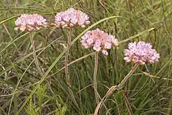 - Kwiaty zebrane w zaokrąglony lub baldachogroniasty tyrs, o osiach bocznych rozdzielonych widłowato na 2 lub 3 części. Oś główna kwiatostanu omszona. Podsadki pochwiaste, skórzaste, omszone. Okwiat promienisty, kółkowy lub kubkowaty. Listki okwiatu wolne, trwałe, po wyschnięciu papierzaste, wierzchołkowo gruczołowate, odosiowo omszone, fiołkoworóżowe lub żółte do pomarańczowych. Trzy pręciki osadzone u nasady listków wewnętrznego okółka okwiatu, doosiowy krótszy i wzniesiony, z dużą, żółtą główką, odosiowe rozpościerające się do niemal wzniesionych, dłuższe, z małą, czerwonawą główką. Nitki szydłowato-nitkowate. Zalążnia dolna, jajowata, trójkomorowa z jednym zalążkiem w komorze. Miodniki położone przegrodowo. Szyjka słupka nitkowata, wygięta na bok. Znamię słupka punktowate[5].