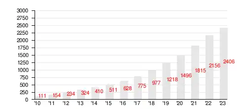 Na koniec 2021 r. sieć liczyła 1815 sklepów, a powierzchnia sprzedaży wyniosła 710,4 tys. m². W 2021 r. otwarto 343 nowe sklepy[22]. Pod koniec marca 2024 sieć posiadała 2438 sklepów[23].