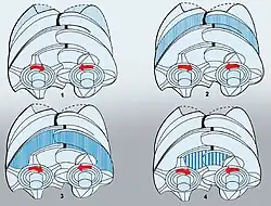 Dwa elementy śrubowe o wzajemnie uzupełniających się asymetrycznych profilach zamykają, a następnie sprężają powietrze znajdujące się pomiędzy nimi. Powietrze jest progresywnie sprężane podczas każdego obrotu. Wtłaczane powietrze wypełnia przestrzeń znajdującą się przed tłokami śrubowymi. Podczas obrotu wirników wlot powietrza zamyka się, więżąc określoną ilość powietrza. Wirniki kontynuują obrót, zmniejszając objętość pomiędzy żłobkami śrub a obudową. Zazębianie się wirników trwa do momentu, kiedy powietrze zostanie wypchnięte do otworu wylotowego[3].