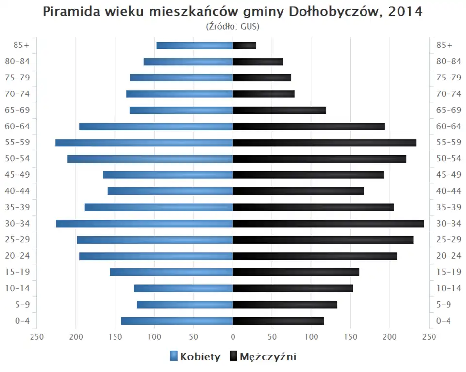 - Piramida wieku mieszkańców gminy Dołhobyczów w 2014 roku[1].