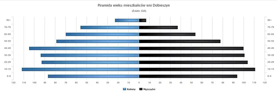 - 1 2 Wieś Dobieszyn (podkarpackie) w liczbach » Przystępne dane statystyczne [online], polskawliczbach.pl [dostęp 2024-04-23] (pol.).