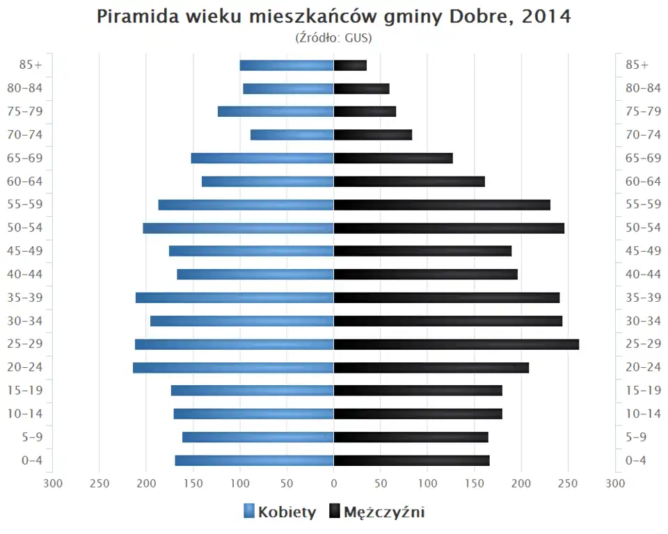 - Piramida wieku mieszkańców gminy Dobre w 2014 roku[8].