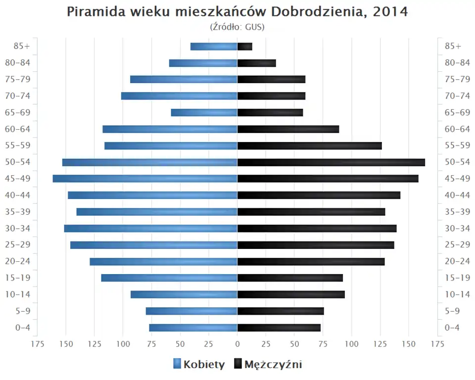 - Piramida wieku mieszkańców Dobrodzienia w 2014 roku[31].
