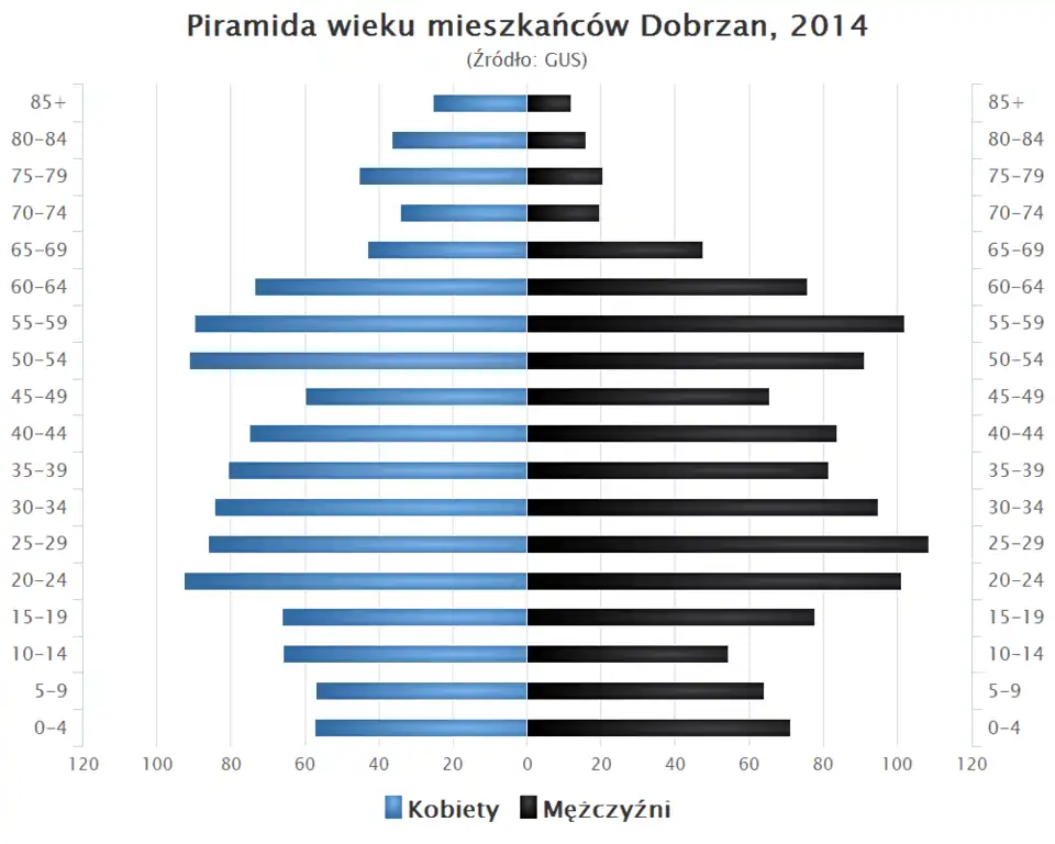 - Piramida wieku mieszkańców Dobrzan w 2014 roku[1].