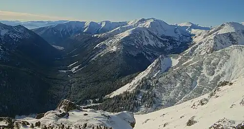 - od północy z polskimi dolinami: Gąsienicową, Bystrej, Małej Łąki oraz od zachodu z Doliną Kościeliską, rozdziela je główna grań Tatr Wysokich od Świnicy do przełęczy Liliowe (Ľaliové sedlo) oraz grań Tatr Zachodnich przez Kasprowy Wierch (Kasprov vrch, 1987 m), Goryczkową Czubę (Goričkova kopa, 1913 m), Suchy Wierch Kondracki (Suchý vrch Kondracký, 1899 m), Kopę Kondracką (Kondracká kopa, 2005 m), Małołączniak (Malolúčniak, 2096 m), Krzesanicę (Kresanica, 2122 m), Ciemniak (Temniak, 2096 m), Tomanowy Wierch Polski (Poľská Tomanová, 1977 m), Smreczyński Wierch (Smrečiny, 2066 m), po Kamienistą (Veľká Kamenistá, 2121 m)