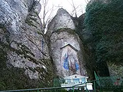 W środkowej części rezerwatu znajduje się polanka. Ponad nią, w południowych ścianach w zakolu zwanym Cyrkiem, we wnęce skalnej urządzono ołtarz z dużym naskalnym obrazem Matki Boskiej Skalskiej. Pierwotny obraz, namalowany przez Izydora Jabłońskiego (wcześniej uważano, że autorem wizerunku jest Walery Eljasz-Radzikowski) w 1863 r., został zniszczony i nieudolnie odtworzony. Został ponownie zrekonstruowany. Obok jest wylot Jaskini nad Matką Boską o długości 82 m. Na polance znajdują się ławeczki dla turystów.