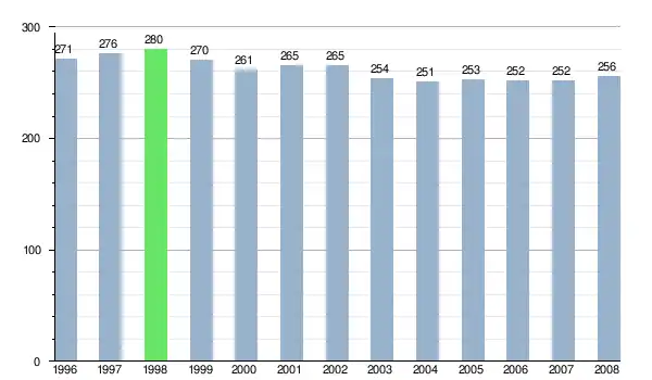 Zmiany liczby ludności w miejscowości Dolný Badín od 1996 roku.