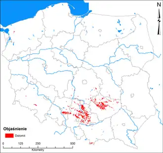 - W Polsce: występuje w Małopolsce – w Tatrach (Dolina Białego, Dolina Kościeliska, Dolina Chochołowska), w Górach Świętokrzyskich, duże wystąpienia są na Wyżynie Krakowsko-Częstochowskiej oraz na Dolnym Śląsku – w Sudetach (Masyw Śnieżnika, Krowiarki).