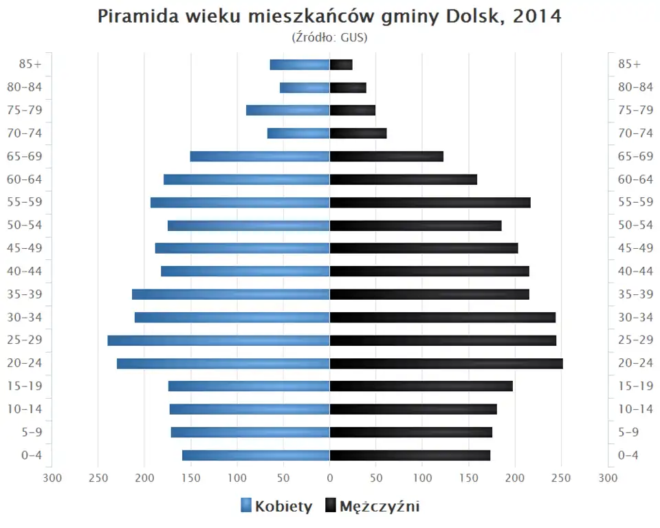 - Piramida wieku mieszkańców gminy Dolsk w 2014 roku[1].