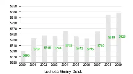 - 1 2 Gmina Dolsk w liczbach [online], Polska w liczbach [dostęp 2016-03-17], liczba ludności na podstawie danych GUS.