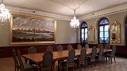 We wnętrzu imponuje tzw. Wielka Sala o powierzchni 330 m², w której w 1921 r. odbywały się obrady plenarne delegacji pokojowych i w której został podpisany końcowy dokument traktatu ryskiego (p. wyżej). Została ona przywrócona do dawnej świetności wraz z wszystkimi dekoracjami ściennymi i sufitowymi oraz obrazami, przedstawiającymi szwedzkich królów Gustawa II Adolfa, Karola XI i Karola XII, królową Krystynę i rosyjską carycę Katarzynę II, cara Piotra I i wielkiego księcia Pawła I. Sąsiaduje z nią bezpośrednio tzw. Sala Lubeki o powierzchni 120 m², zdobiona panoramą Lubeki. Na schodach prowadzących do wielkiej sali znajdują się popiersia wybitnych kompozytorów: Johanna S. Bacha, Georga F. Händla, Josepha Haydna, Wolfganga Amadeusza Mozarta, Ludwiga van Beethovena, Franza Schuberta, Richarda Wagnera i Johannesa Brahmsa[2].