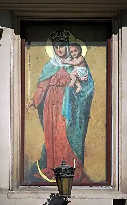 Na południowej elewacji skrzydła wschodniego znajduje się barokowy obraz Matki Bożej z Dzieciątkiem, malowany na desce, naturalnych rozmiarów. Pochodzi z XVII lub XVIII wieku. Odnawiał go w 1828 roku malarz Lisowski, następnie w 1863 roku Wojciech Eliasz (kosztem Ignacego Kruszewskiego, więzionego wówczas na Wawelu), a w końcu Jan Głuszkiewicz w 1890 roku. Obraz nosi ślady szesnastu kul niewiadomego pochodzenia. Wiąże się je z czasami potopu szwedzkiego, konfederacji barskiej lub walk ulicznych 26 kwietnia 1848 roku, w trakcie Wiosny Ludów[32].