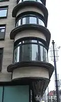 Wzniesiony na wówczas nowatorskiej konstrukcji stalowej pokrytej betonem. Zbudowany na planie zbliżonym do kwadratu, podpiwniczony, sześciopiętrowy (dwie ostatnie kondygnacje cofnięto względem lica o 1,75 m), kryty płaskim dachem. Posiada 3 klatki schodowe, 2 windy osobowe i 2 towarowe. Budynek ma dwie różne elewacje w stylu ekspresjonistycznym: od ul. Szewskiej jest dłuższa, o podziałach horyzontalnych (ścianki podparapetowe ujęte w mosiężne gzymsy, licowane herceńskim trawertynem i pasy okien o mosiężnej ślusarce) oraz z zaokrąglonym, wysuniętym wykuszem, pełni rolę reprezentacyjnej fasady. Elewacja od ul. Oławskiej ma regularnie rozmieszczone rzędy prostokątnych okien. Parter całego budynku jest całkowicie przeszklony i cofnięty oraz wydzielony wydatnym gzymsem. Pierwotny, modernistyczny wystrój wnętrz powstał wg projektu Heinricha Tischlera[1].
