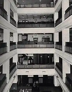 W 1936 r. atrium zadaszono szklanym przekryciem, a w 1939 r. dokonano zmian w wystroju wnętrz według projektu Františka Kolářa i Jana Rubégo.