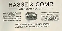 Budynek przeznaczony był do celów handlowych w parterze i na 1. piętrze. Wyżej znajdowały się apartamenty. Sprzedawano tu przede wszystkim: materiały na ubrania, jedwabie, artykuły dla mężczyzn i bieliznę (parter), konfekcję damską (duży salon na piętrze) i nowości konfekcyjne (przeszklony, wolnostojący pawilon). W czasie trwania Wystawy Wschodnioniemieckiej firma miała własne stanowisko w głównej hali. Prezentowano tam wyroby na miarę, podłóg paryskich i wiedeńskich modeli.