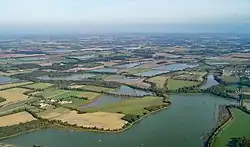 Region tworzy falisty płaskowyż, od strony rzek Ain i Rodanu (na wys. 300 m n.p.m.) łagodnie obniżający się w kierunku północno-zachodnim. Dombes charakteryzuje się słabo przepuszczalną strukturą polodowcową z gliniastą glebą. W związku z tym występuje tam duża ilość zatrzymujących wodę opadową zbiorników, których wielkość wynosi od 0.14 do 1 km², zajmujących łącznie powierzchnię mniej więcej 93 km². Cała powierzchni Dombes wynosi 1140 km². Stawy te były tworzone i wykorzystywane przez miejscowych właścicieli ziemskich do hodowli ryb już od XV w., a nawet wcześniej. Odejście od rolnictwa na rzecz rybactwa przyczyniło się z czasem do rozwoju epidemii i wyludnienia regionu, co pod koniec XVIII w. doprowadziło do ograniczenia decyzją francuskiego parlamentu powierzchni stawów i masowego ich osuszania (zajmowały one wówczas dwukrotnie większą powierzchnię, niż obecnie). Prace te, wraz z wytyczaniem nowych dróg i innymi inwestycjami infrastrukturalnymi były kontynuowane w XIX w. W celu zintensyfikowania tych działań Napoleon III sprowadził do Dombes trapistów. Rybactwo jest z powodzeniem praktykowane w regionie również obecnie i koncentruje się głównie na hodowli karpia, szczupaka i lina.