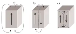 Sąsiadujące momenty ustawiają się równolegle, co powoduje powstawanie domen magnetycznych. Jednakże, jeśli spontanicznie namagnesowany obszar jest wystarczająco duży następuje podział domeny na mniejsze części, z których każda jest namagnesowana antyrównolegle do sąsiedniej (lub prostopadle w przypadku domen zamykających). Pozwala to na zawarcie całkowitej energii magnetycznej wewnątrz danego ziarna lub kryształu, czyli osiągnięcie stanu o jeszcze niższej energii.