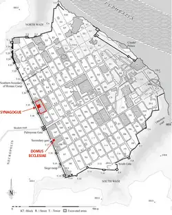 ![]() Frontowa strona ruin domus ecclesiae | |||||||||||||