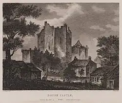 ![]() Zamek Doune widziany z mostu nad rzeką Teith. Miasto Doune mieści się na lewo, poza kadrem. | |