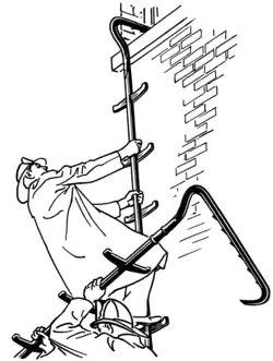 Drabinki tego typu składały się z drewnianego drąga o przekroju prostokątnym, do którego montowane były szczeble. Całość zakończona była stalowym, uzębionym hakiem. Zaletą tego typu drabin był jej stosunkowo niewielki ciężar, wadą natomiast jej mała stabilność. Tego typu drabiny były używane przez straże w Stanach Zjednoczonych, Wielkiej Brytanii i Japonii.