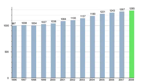 Zmiany liczby ludności w miejscowości Drahňov od 1996 roku[8].