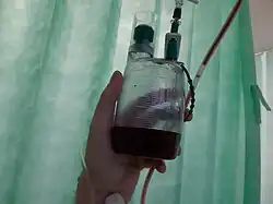 Wykorzystuje się także klasyczny zestaw składający się z dwóch butelek. Pierwsza z nich służy do odprowadzania treści z ciała pacjenta poprzez pierwsze wejście łączące butelkę z drenem. Drugie wyjście łączy ją z drugą butelką, która połączona jest z próżnią. W drugiej butelce tkwi dodatkowa rurka, która jest z jednej strony otwarta, zaś drugi koniec zanurzony jest w płynie. Głębokość zanurzenia decyduje o wartości ujemnego ciśnienia, jakie wytwarza zestaw.