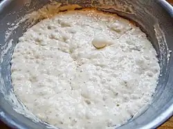Drożdże używane do wypieku chleba i ciast to również szczepy S. cerevisiae, czasami używa się gatunku Kazachstania exigua. Jak wszystkie drożdże, wykorzystują one zawarte w cieście cukry, wytwarzając przy tym alkohol i dwutlenek węgla. Początkowo oddychają tlenowo, wytwarzając dwutlenek węgla i wodę, a kiedy kończy się tlen, rozpoczyna się fermentacja, w wyniku której powstaje etanol jako produkt odpadowy. Podczas wypieku drożdże w wyższej temperaturze zamierają, alkohol wyparowuje, natomiast dwutlenek węgla tworzy w cieście pęcherzyki, dzięki czemu ciasto „rośnie” i zostaje spulchnione[12].