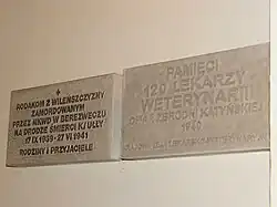 - pamiątkową tablicę i urnę z ziemią z Mikałajewa, które znajdują się w warszawskiej bazylice Świętego Krzyża (kaplica katyńska)[48];