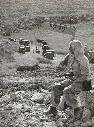 Na samym początku wojny o niepodległość w dniu 15 maja 1948 do dawnego Mandatu Palestyny wkroczył jordański Legion Arabski, dowodzony przez brytyjskiego generała John Bagot Glubba. W rejonie miasta Ramallah rozlokowała się 3 Brygada dowodzona przez płk Ashtona (obejmowała 2 Regiment pod dowództwem majora Slade’a i 4 Regiment pod dowództwem ppłka Habesa Majali). Około połowy żołnierzy (4 Regiment) wyruszyła w kierunku Latrun, przejmując w dniu 17 maja z rąk Arabskiej Armii Wyzwoleńczej fort policji i całkowicie przerywając żydowską komunikację z Jerozolimą[4]. Sytuacja społeczności żydowskiej w Zachodniej Jerozolimie stała się bardzo ciężka. Jerozolimscy Żydzi byli odcięci od dostaw z równiny nadmorskiej. Ich zapasy żywności oraz amunicji szybko malały. Uciekinierzy z Dzielnicy Żydowskiej Starego Miasta potrzebowali pomocy, której z powodu ograniczonych możliwości nie można było im udzielić w wystarczającej ilości. Do miasta napływali także uciekinierzy z okolicznych kibuców.