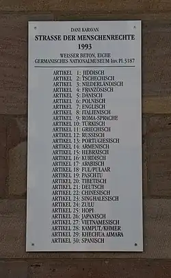 - ↑ Rainer Aul und Franz Engeser, Bayerischer Rundfunk, Symbol für den Frieden: 20 Jahre Straße der Menschenrechte | BR.de [online], 25 października 2013 [dostęp 2018-11-18] (niem.).