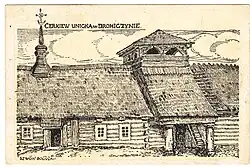 - Drewniana kaplica św. Barbary. Rozebrana przez Rosjan w 1940.