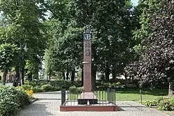 - Obelisk z 1928 roku na Górze Zamkowej ustawiony z okazji 10 lecia odzyskania Niepodległości