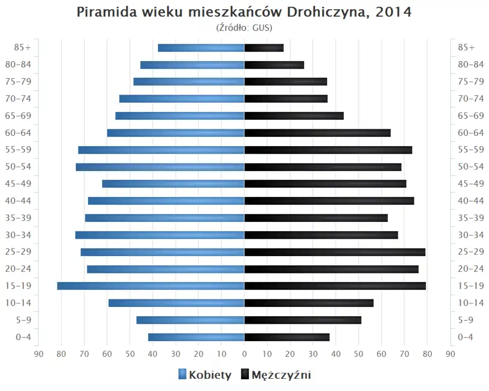 - Piramida wieku mieszkańców Drohiczyna w 2014 roku[30].