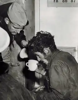 W 45. dobie dryfowania, nocą barkę wymijał niezidentyfikowany okręt, ale radziecka jednostka nie została przez niego zauważona. Identyczna sytuacja wystąpiła w 48. dniu dryfu, w wypadku dwóch kolejnych, nieznanych jednostek[3]. 6 marca, w 49. dniu dryfowania, krańcowo wyczerpani żołnierze radzieccy zostali przypadkowo odkryci przez śmigłowiec z amerykańskiego lotniskowca USS "Kearsarge" o 1000 mil na pn.-zach. od Midway. Dzień później, 7 marca, zostali podjęci na pokład amerykańskiej jednostki. Później amerykańskie źródła oceniały, że barka przedryfowała 1020 mil morskich[7]. Rozbitkowie, po otrzymaniu pierwszej pomocy, zostali przetransportowani do San Francisco (leżącego najbliżej bazy USS "Kearsarge"), gdzie przybyli 16 marca i oficjalnie zostali internowani. Traktowani jednak byli jak goście, zapewniono im na koszt rządu Stanów Zjednoczonych utrzymanie. Zaproponowano azyl polityczny, który wszyscy odrzucili, do końca zachowując niezłomną postawę "ludzi radzieckich"[2].