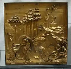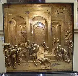 Pierwotnie drzwi ze scenami starotestamentowymi miały znajdować się po stronie północnej baptysterium. Po wykonaniu wzbudziły jednak takie uznanie, że postanowiono zakłócić porządek ikonograficzny i przenieść je na stronę wschodnią, na miejsce drzwi ze scenami z życia Jana Chrzciciela, naprzeciwko głównego wejścia do katedry.